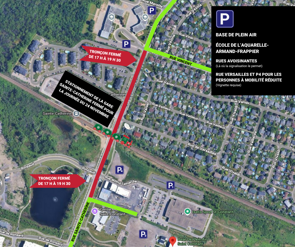 - Stationnement incitatif de la gare Sainte-Catherine : fermé toute la journée du 24 novembre